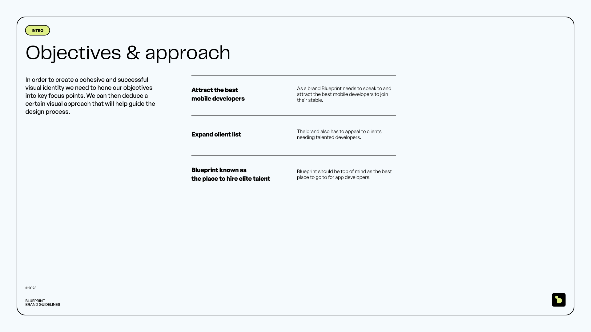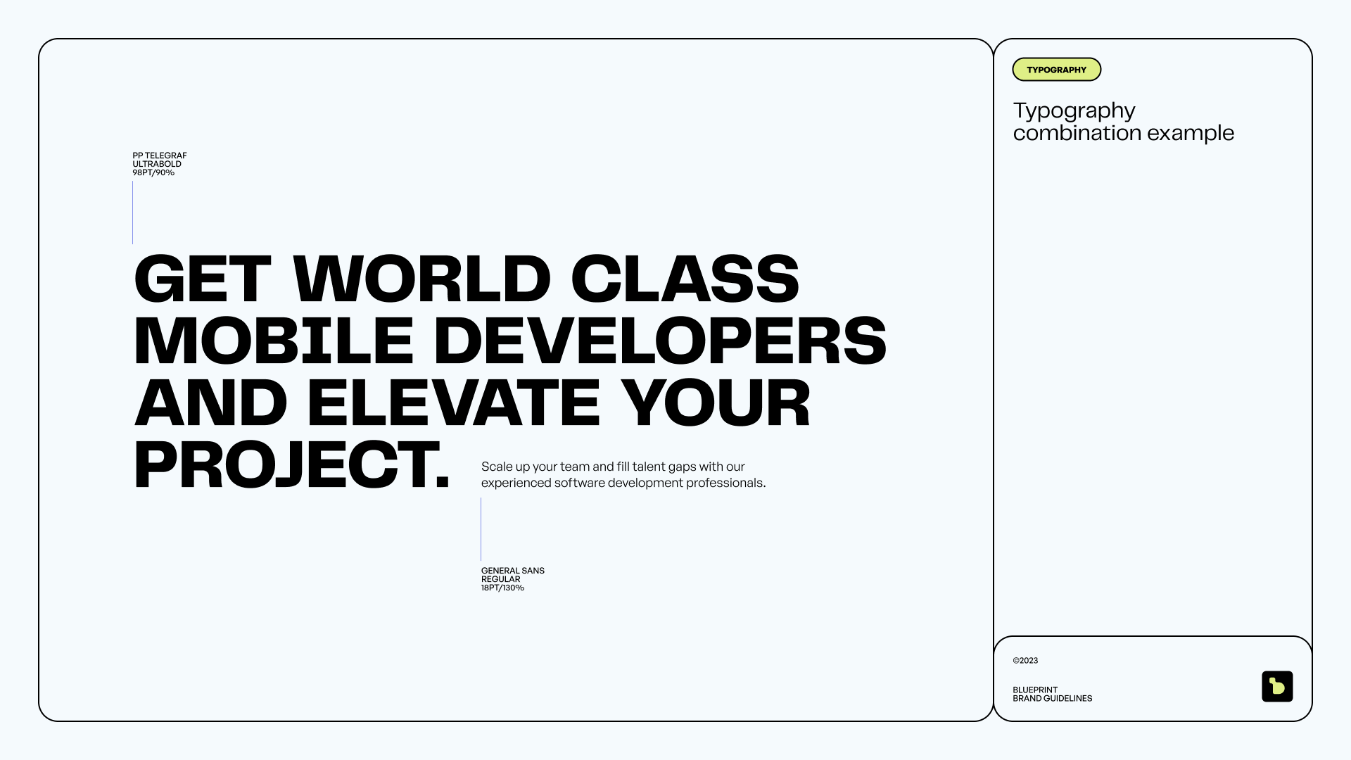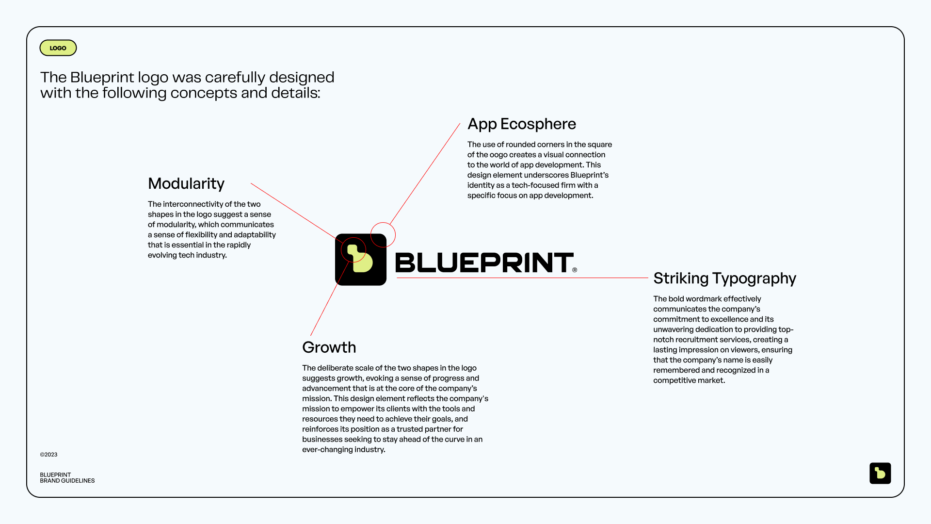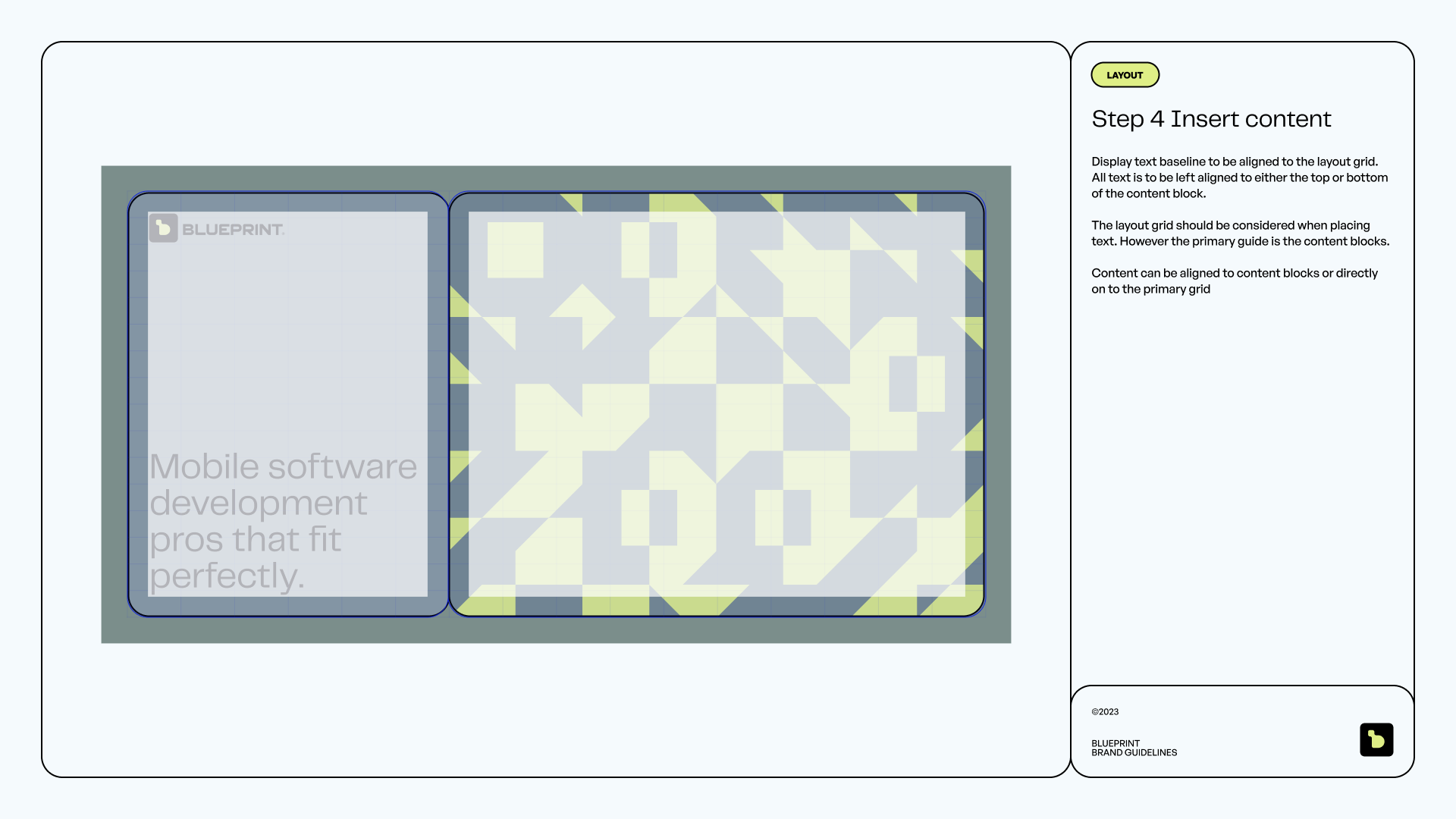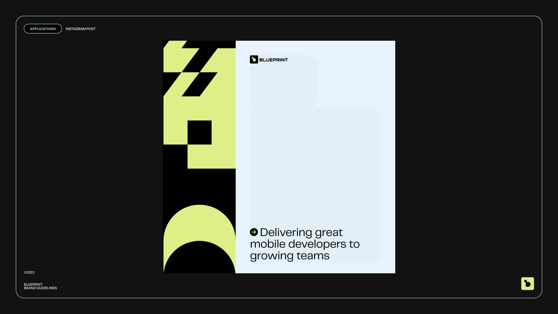 The visual identity melds elegance and innovation. We seamlessly integrated a modular design system to mirror Blueprint’s adaptable business model, underscoring their commitment to precision and flexibility in addressing their clients' mobile development requirements.