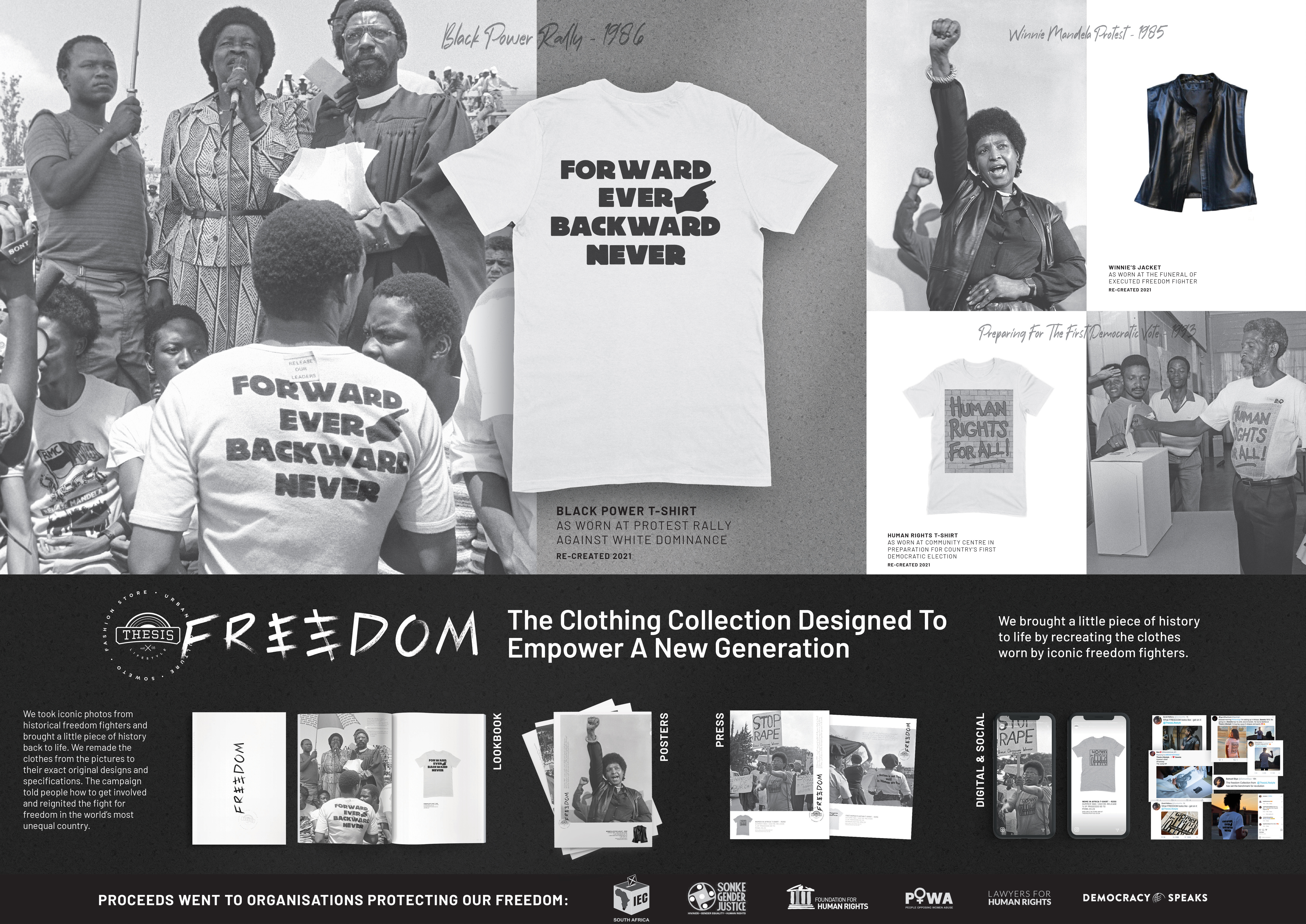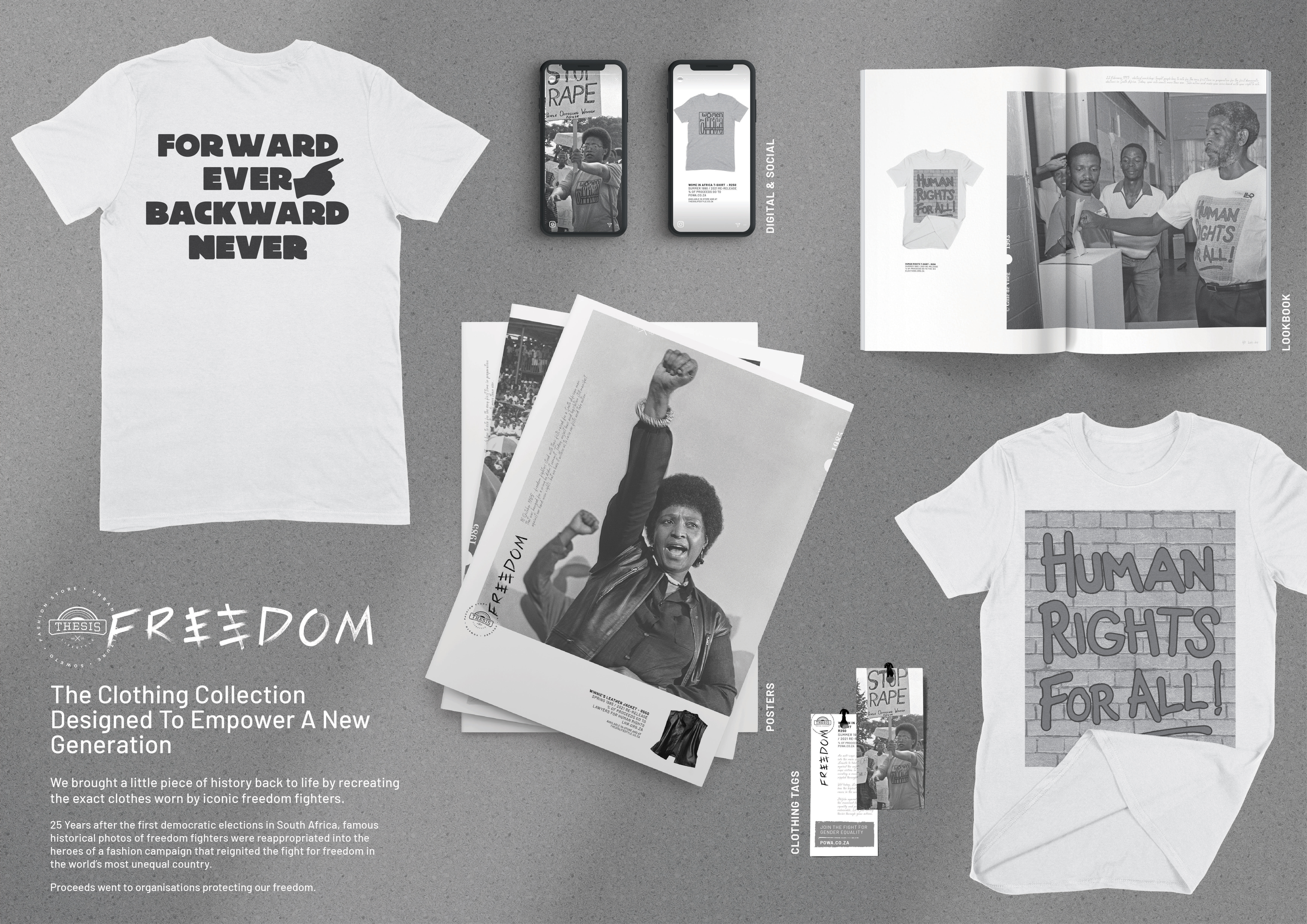 Clothes from iconic pictures were remade to their exact, original specifications. The campaign told people how to get active in the continued fight for freedom in the world’s most unequal country.